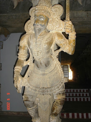 கொடி மரம் விலகி உள்ளதைக் கண்டோம். சிற்பங்கள் நிறைந்த முன் மண்டபத்தை தாண்டியவுடன்
